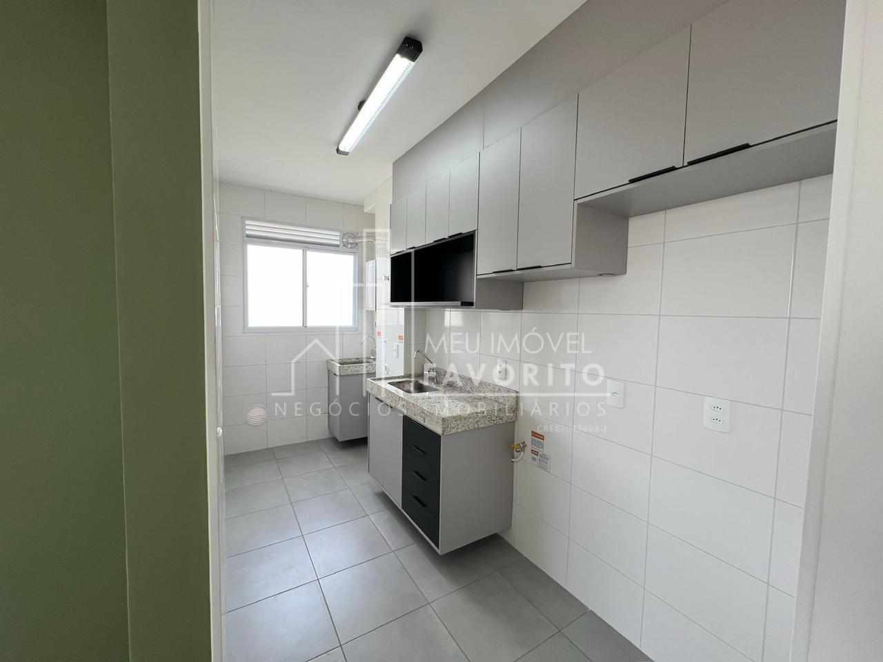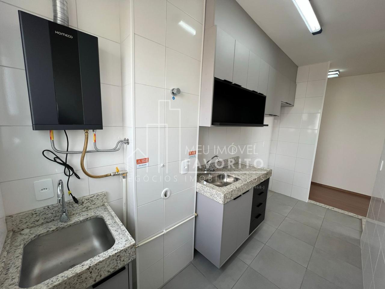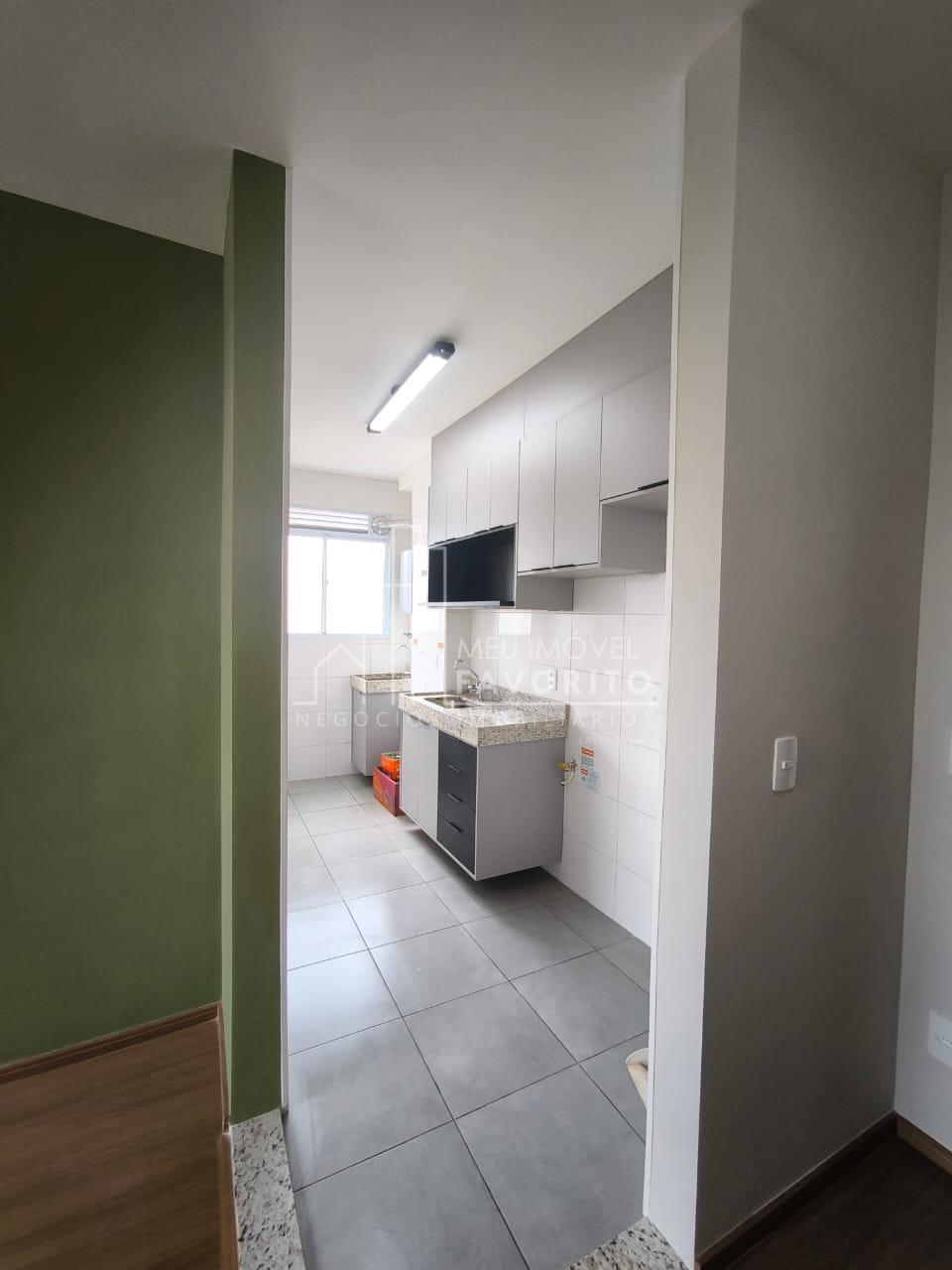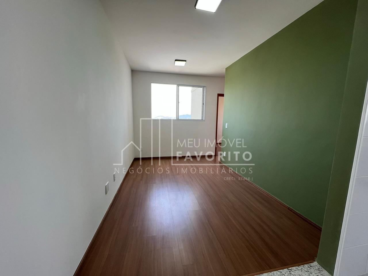 Nunca habitado! Apartamento de 46 m² no Condomínio Jardins, bairro Engordadouro andar alto, sol da manhã. Possui 2 quartos, sala dois ambientes, banheiro, cozinha e lavanderia com móveis planejados. Aquecimento a gás.