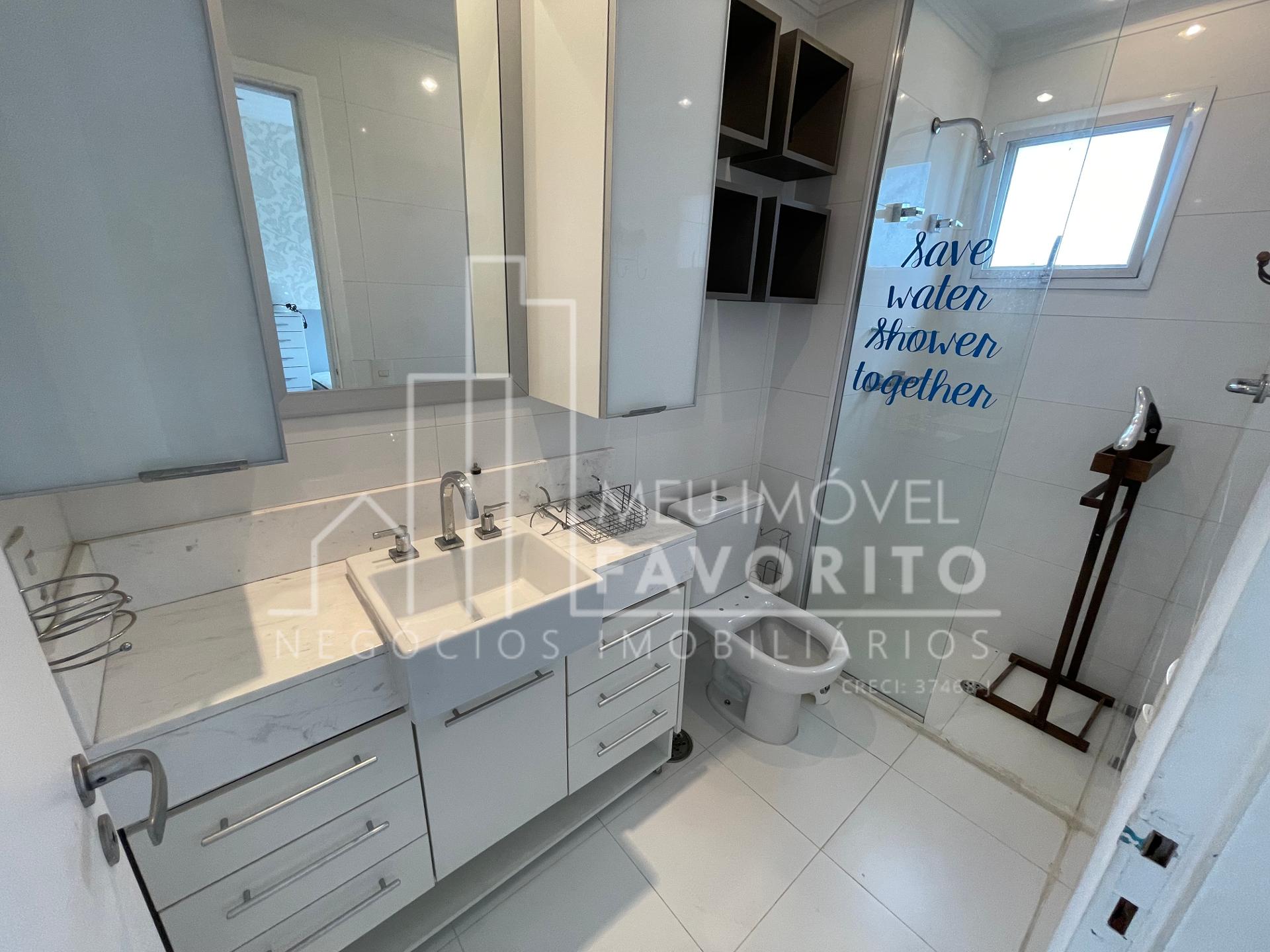 - Banheiro social com armário e box