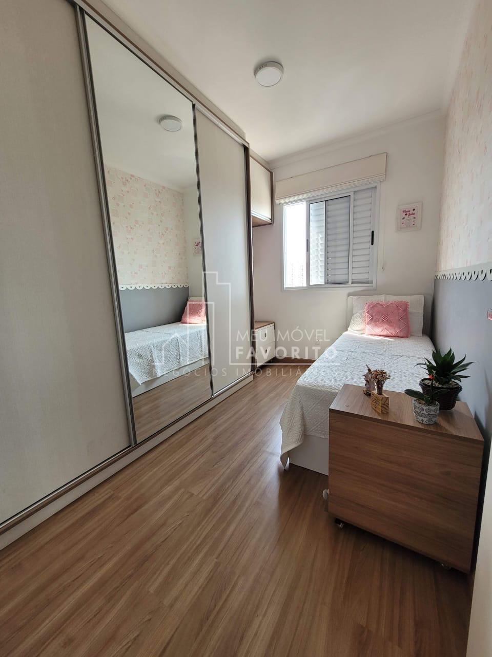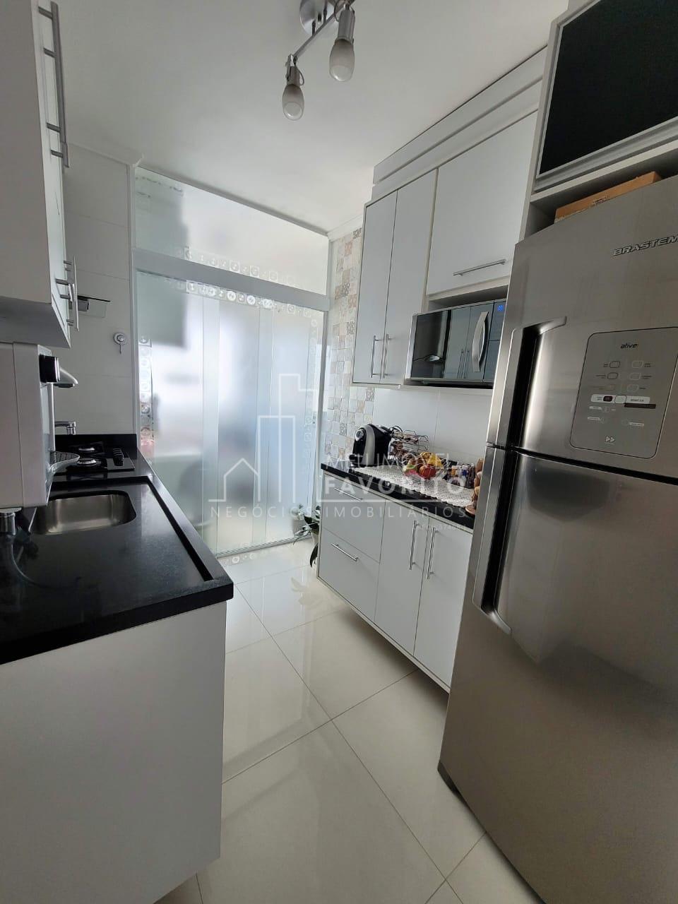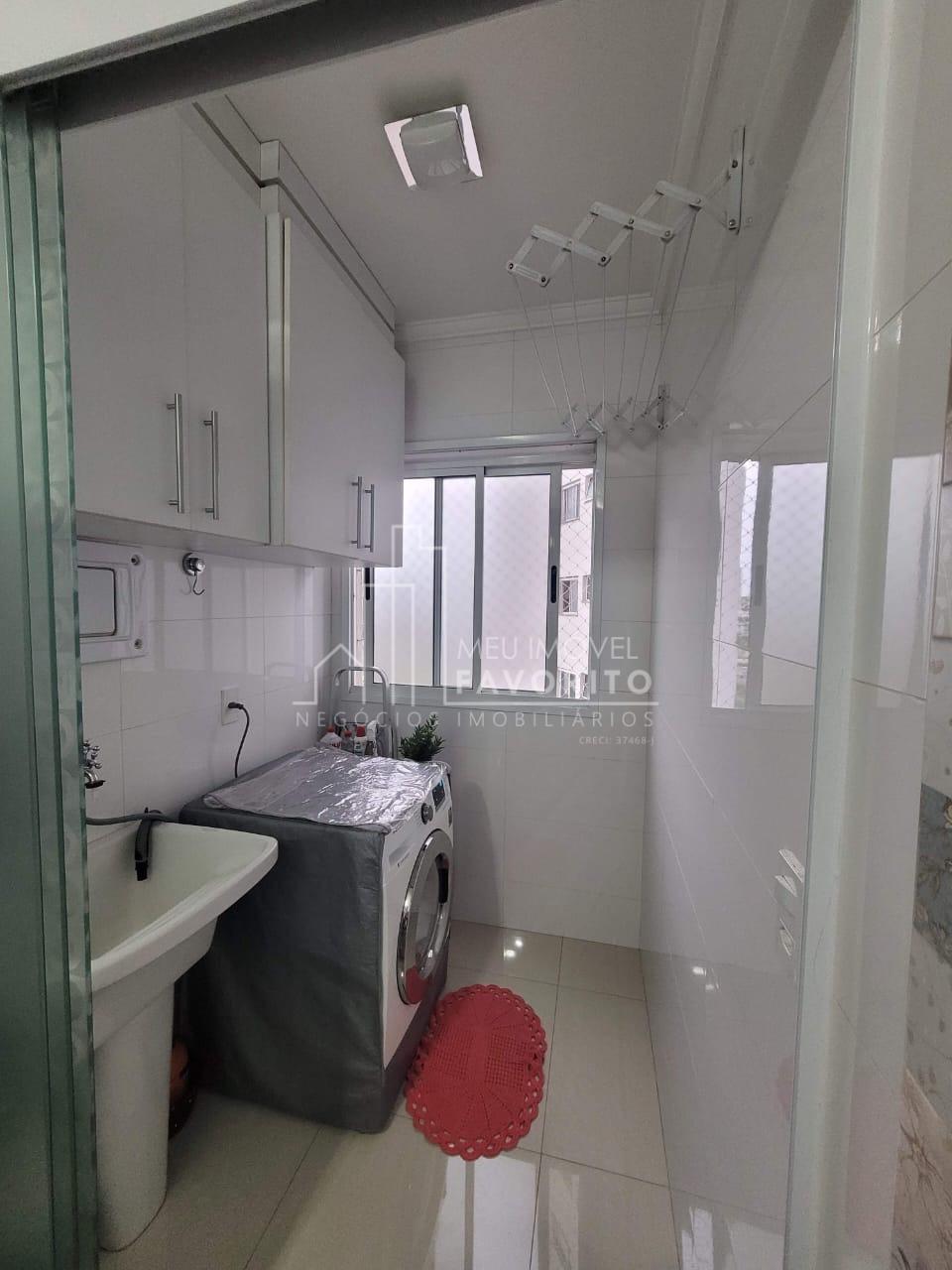 Apartamento 52m² com 2 dormitórios, cozinha com planejados, lavanderia com fechamento em vidro armário e varal de teto, sala com painel de tv, piso laminado, sacada com telinha e vista livre, dormitórios com planejados, banheiro com box e armarinho.
