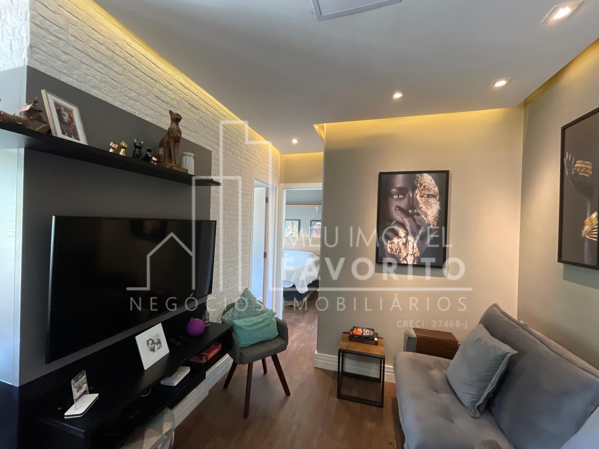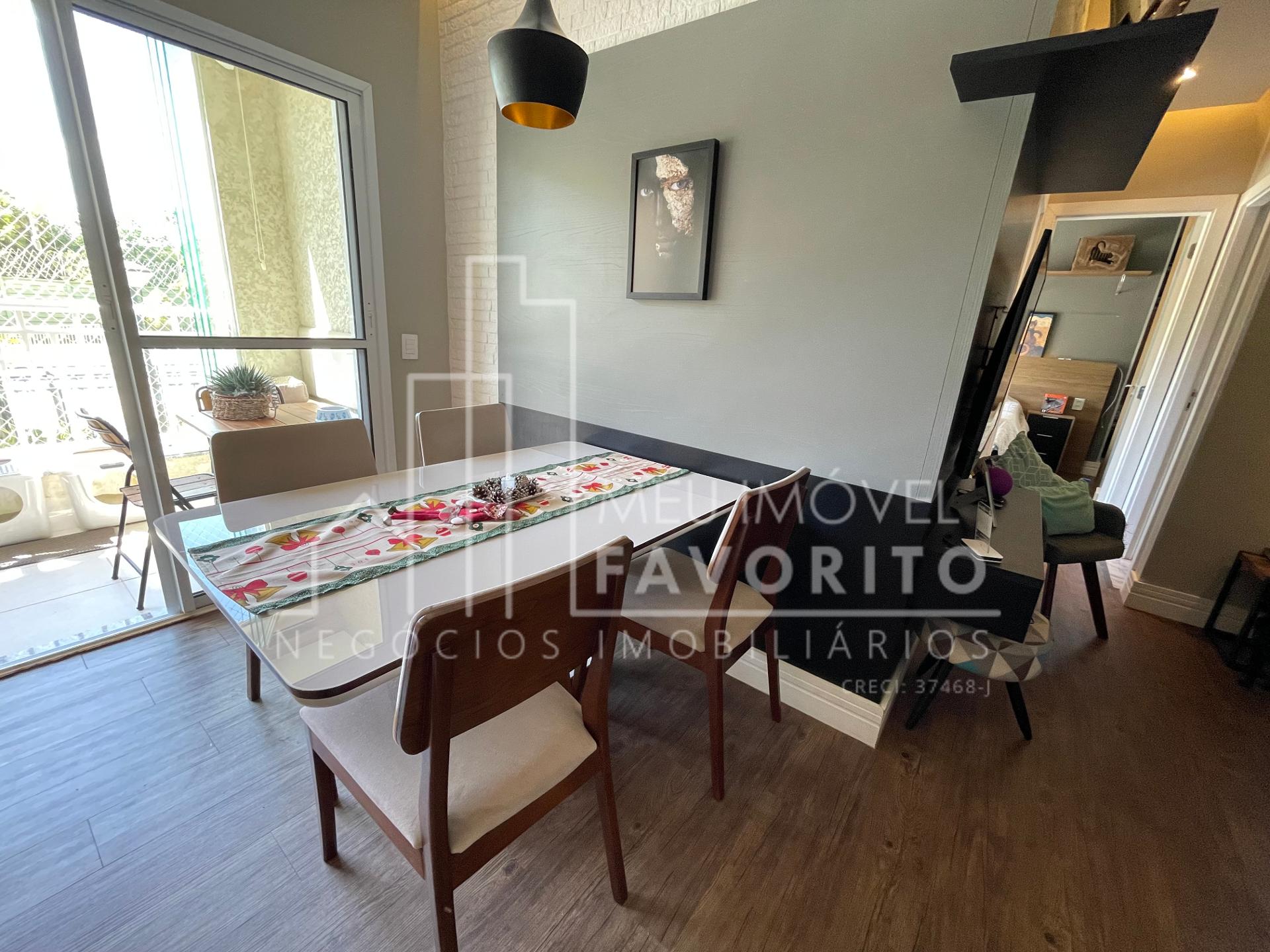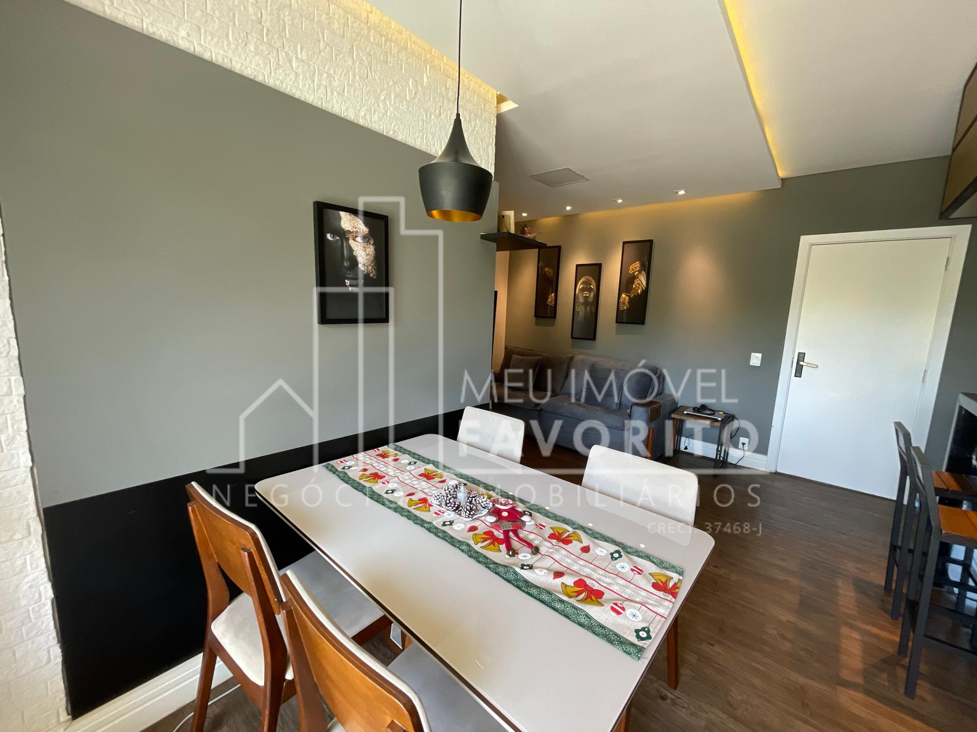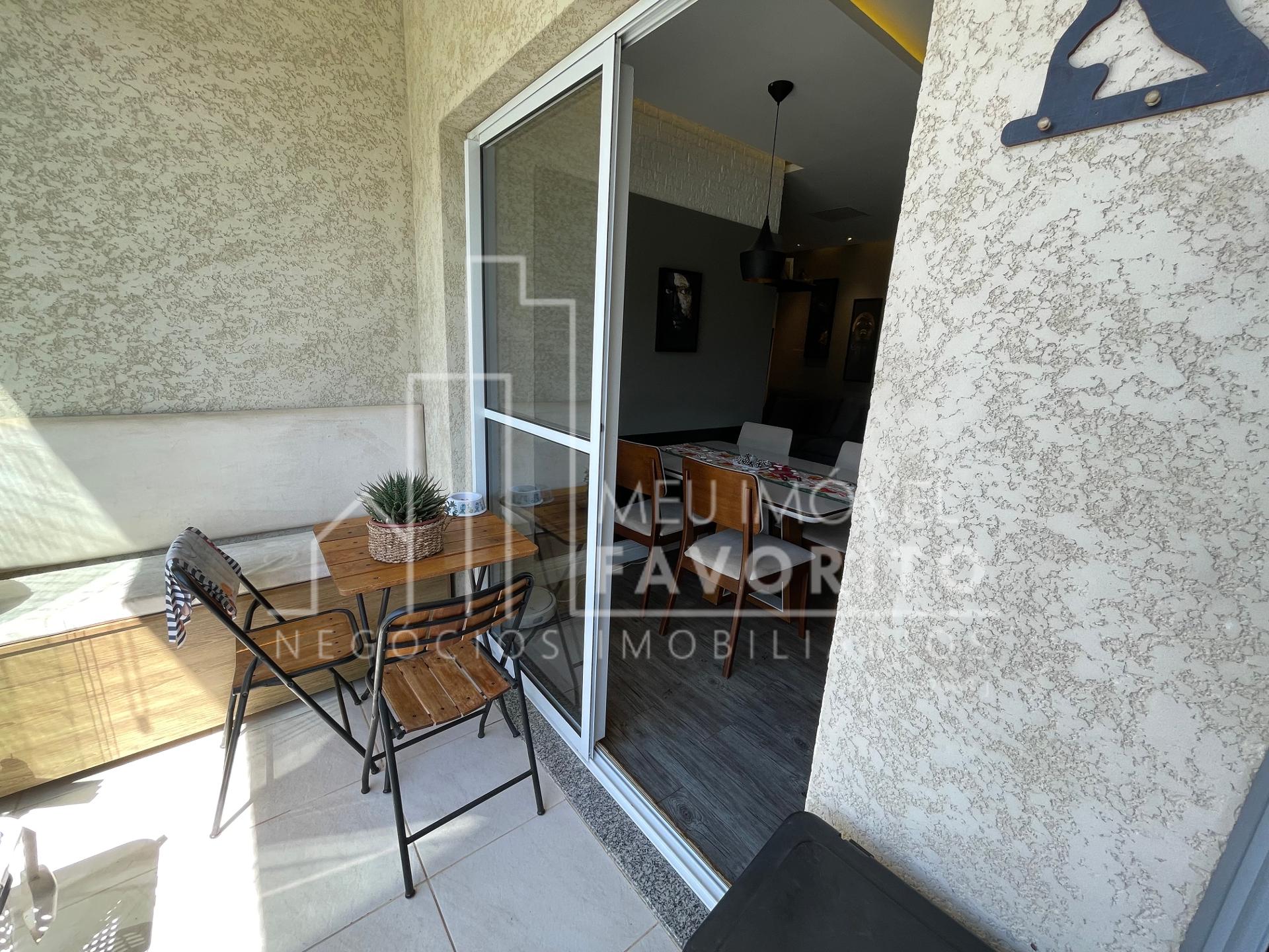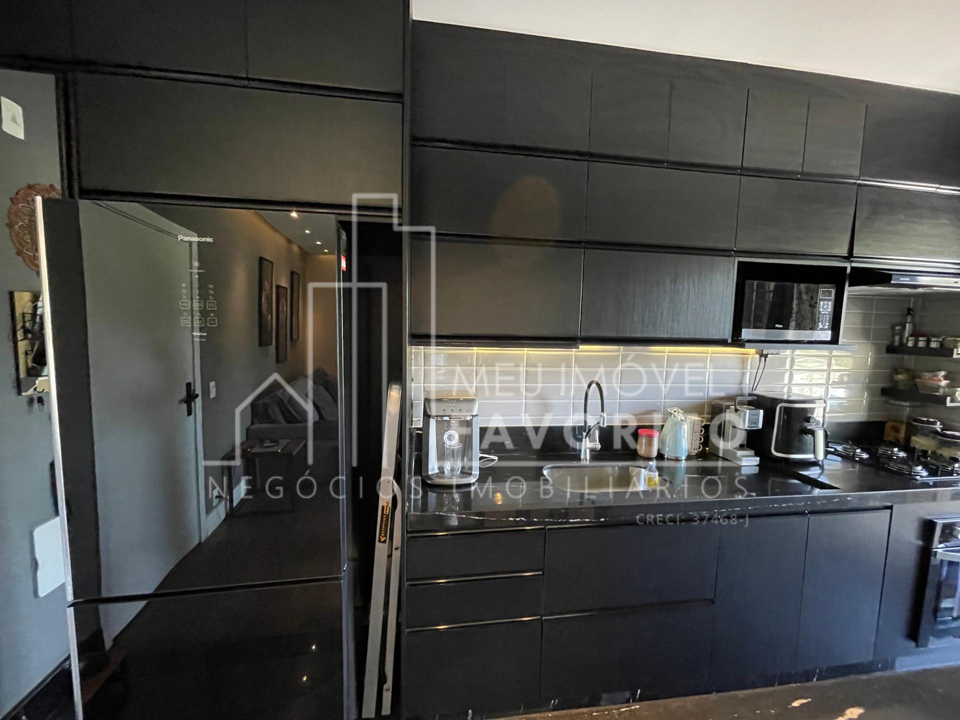 Apartamento com 2 dormitórios sendo 1 suíte, 68m², cozinha toda planejada com um tom mais escuro, coifa e forno ja embutidos, sala de estar e jantar integradas, sacadas com fechamento em vidro, espaço do garden fechado por telinha, suíte com planejado no quarto e no banheiro.