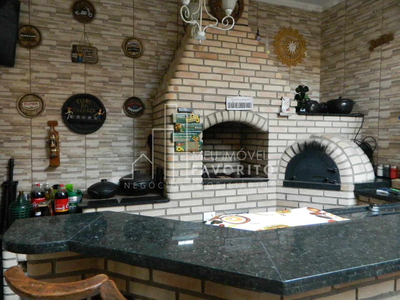 Área gourmet com churrasqueira e cooktop, lavanderia coberta e 2 vagas de garagem cobertas com portão eletrônico.