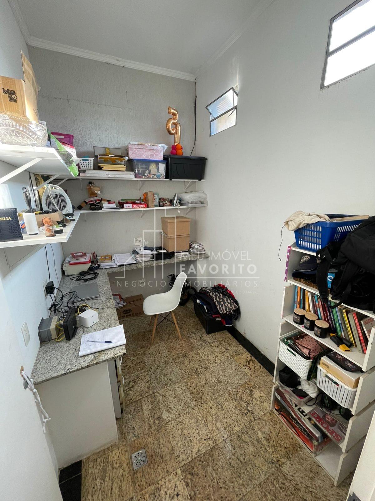 Com quatro quartos, sendo uma suíte, sala ampla e bem iluminada, escritório planejado, lavabo, cozinha equipada com móveis sob medida, área de serviço e banheiro social com box de vidro e gabinete.