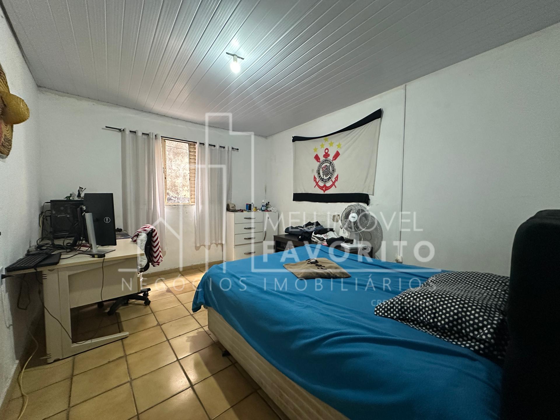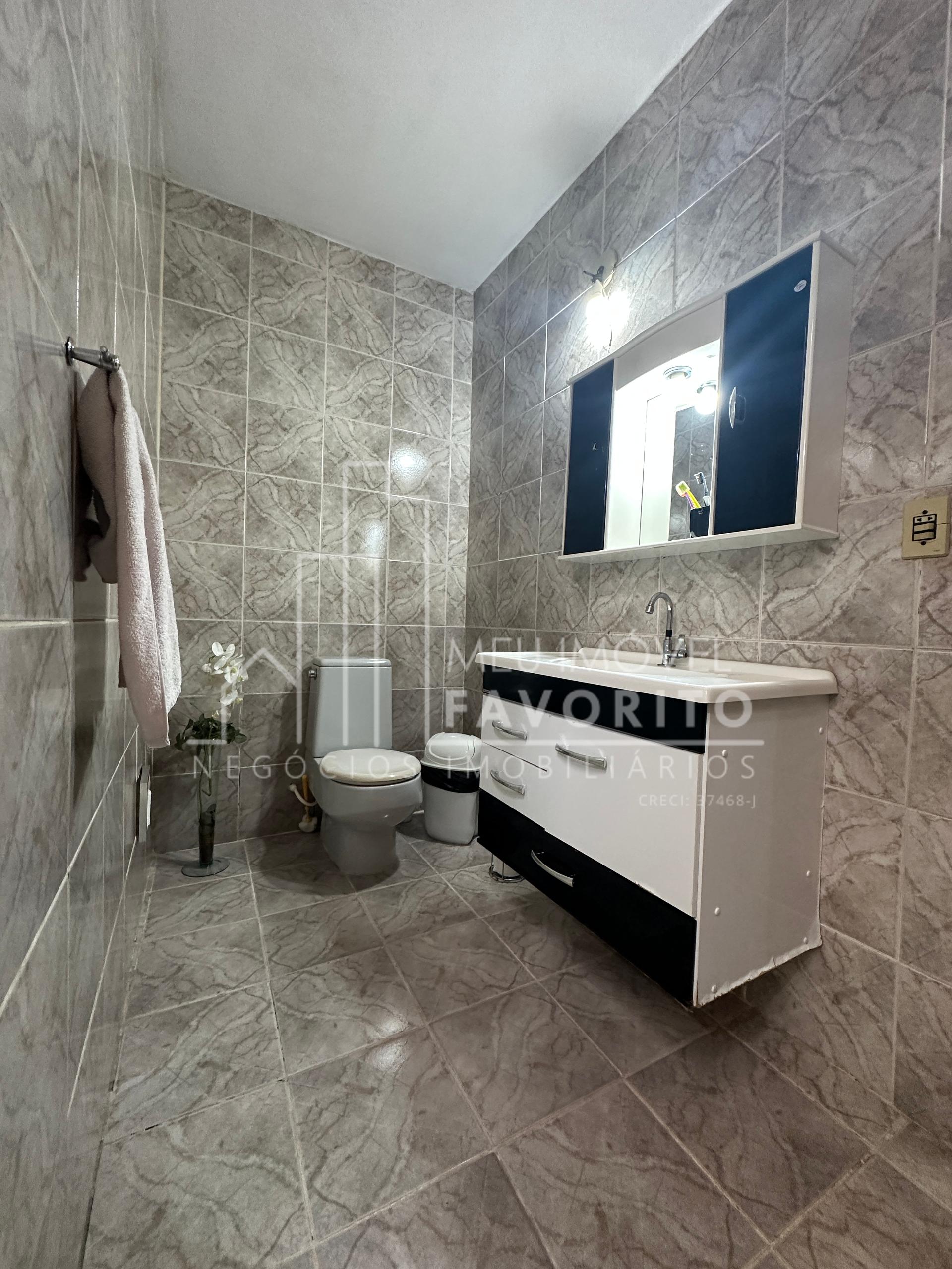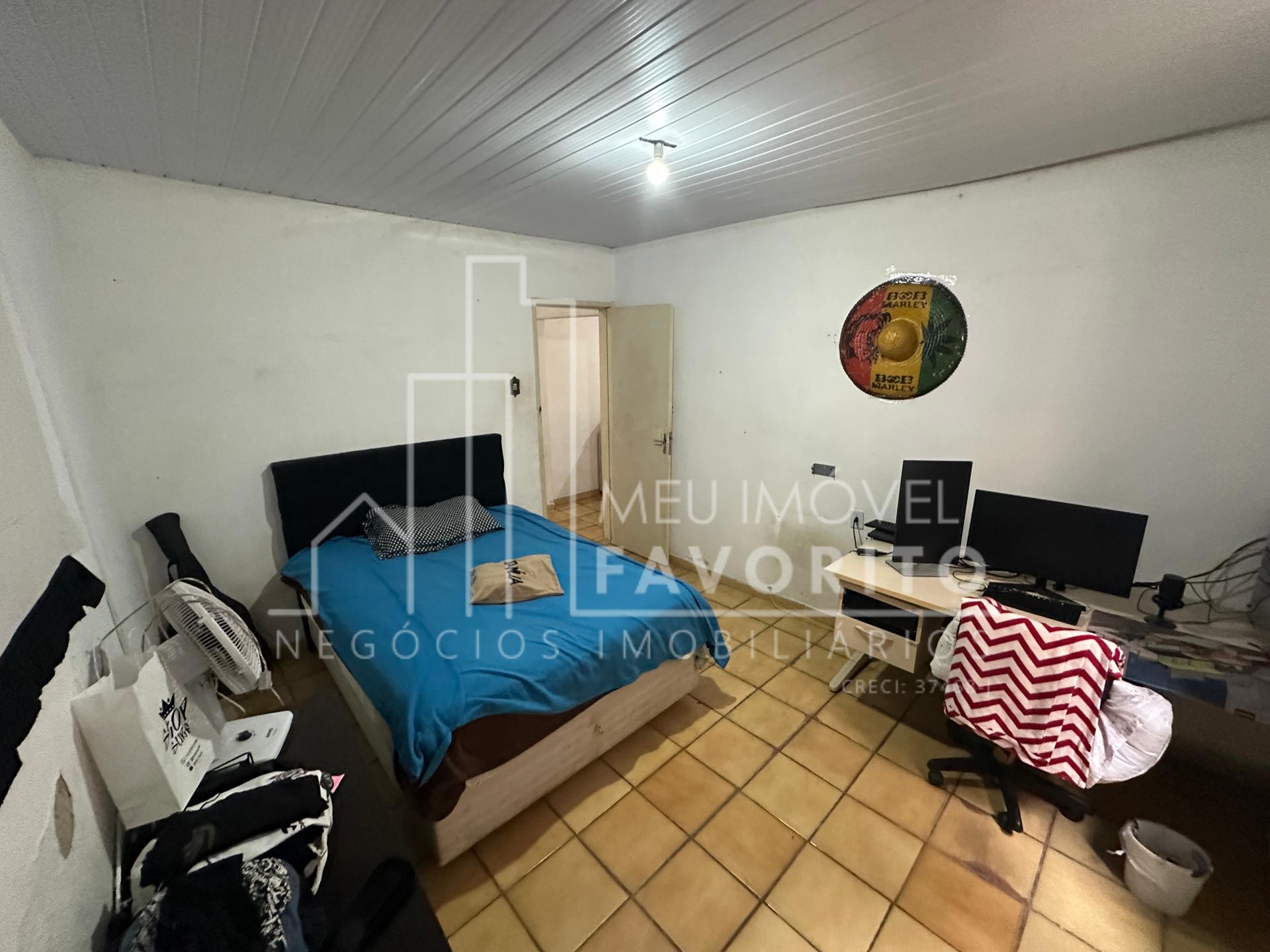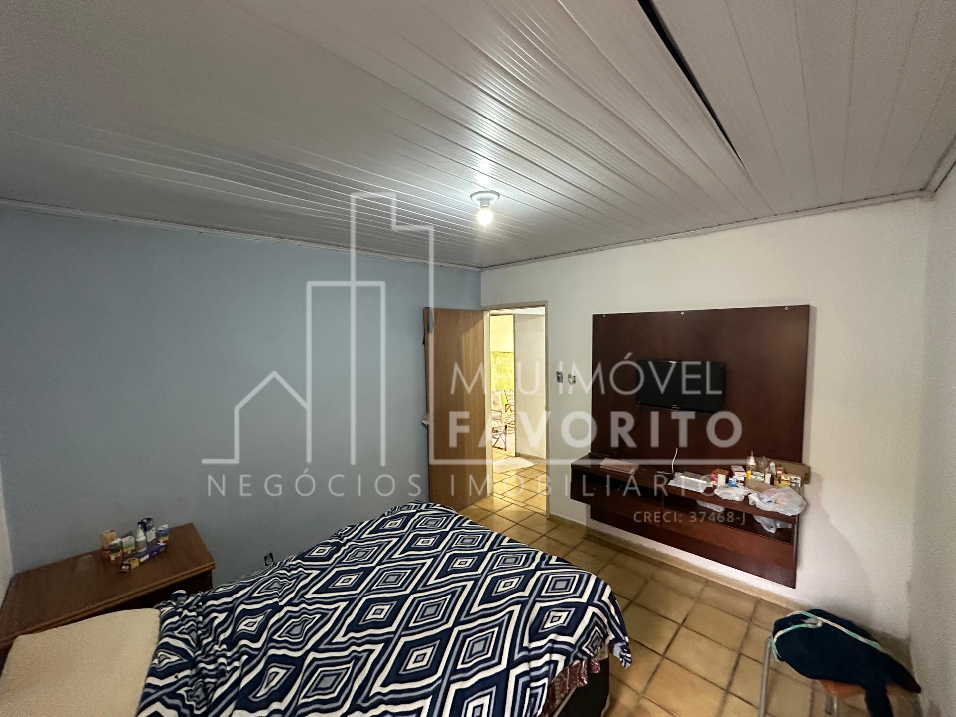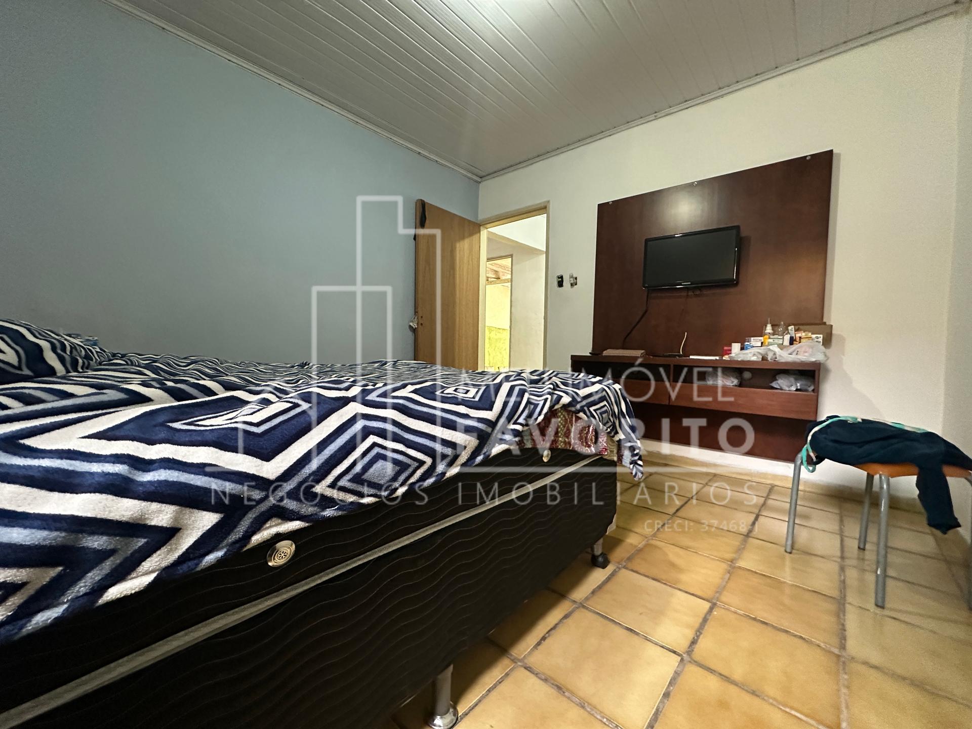 Sala de TV, três dormitórios, banheiro com box ;